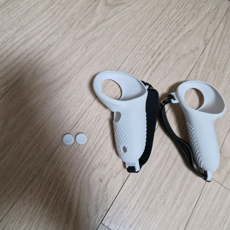 메타퀘스트3/3s 컨트롤러 그립 커버입니다 흰색이고, 상태는 사진과 같고 조이스틱커버도 2개 드립니다 마감도 괜찮고 손에서 안미끄러집니다(실리콘) 직거래 망포역이나 대선초 가능합니다.
