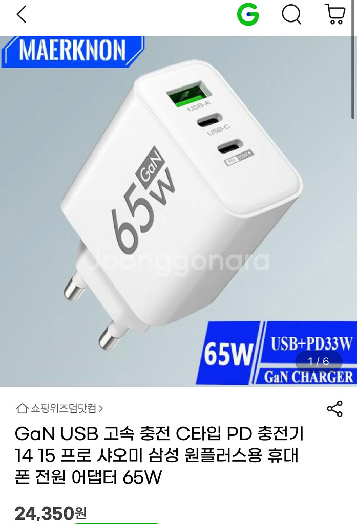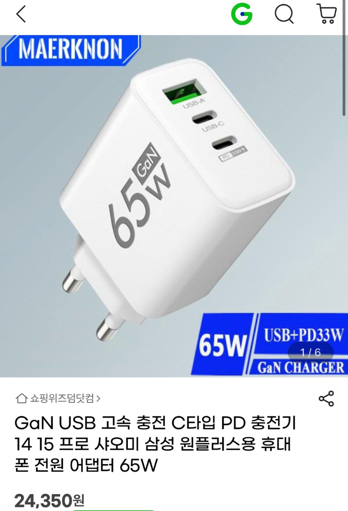 GaN 65W 초고속 충전기입니다. (지금도 판매중입니다) USB-A, USB-C 포트 새제품 2만원 정도 하는건데 많아서 싸게 팔아요 3포트 합 65W 2개있어요 두개이상 구매시 할인 해드려요. 문고리거래, 택배거래만 해요. 중고거래 특성상 환불 불가해요. 글, 사진 미숙지로 인한 문제 상황 포함