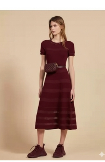 산드로 sandro 버건디 니트 원피스 36 사이즈 정품 사이즈 36 총장 120 가슴반품 32.5 산드로 sandro 버건디 컬러의 고급스러운 원피스입니다 사이즈 36으로 55정도이고 두껍지 않은 니트 원피스 소재로 여름에 단품이나 봄 가을에 레이어드해서 입기 괜찮아요 신축성 있는 소재이고 여밈은 없고 레이스 펀칭 디테일 있고 허리 라인 잡혀 있어요 기장감 살짝 있는편이고 여성스럽고 우아하게 연출하기 좋은 아이템이에요 펀칭된 부분 있어서 이너 입으시면 되실것 같아요 예민하신 분 연락 사양하며 사진 그대로 상태로 컨디션 좋아요 모델샷은 다른 컬러이니 참고해주세요