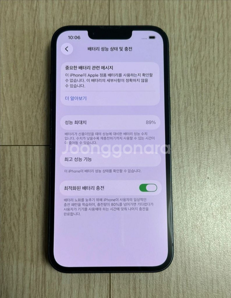 애플 아이폰13 128GB 미드나이트 - 액정 : 무기스, 무잔상 - 테두리 & 뒷판 : 약간의 생활기스 정도 있는 단말기 전체적으로 상당히 깨끗한 상태 (S급) - 기능 : 터치, 카메라 등 모든 기능 정상 작동 - 배터리 : 87% - 정상해지 공기계 (SKT, KT, LG U+, 알뜰폰, 선불 유심 모두 호환 가능)