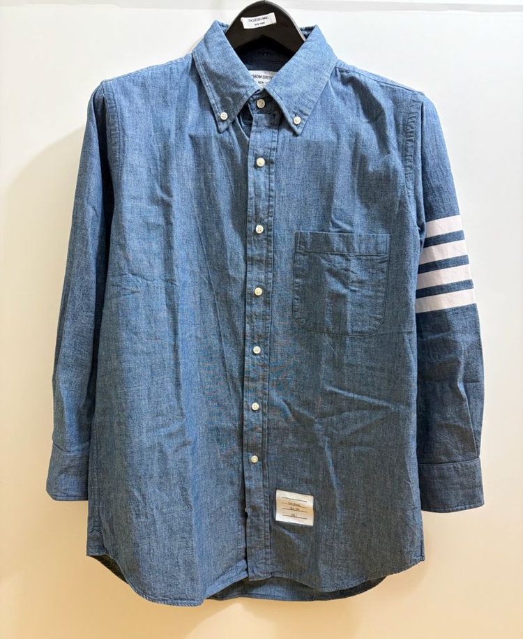 어깨 41 가슴 53 총장 78 소매 55 톰브라운 시그니처라 할 수 있는 샴브레이 셔츠입니다. 구멍, 찢어짐, 얼룩 등 하자없이 상태 아주 좋습니다. 사용감도 아주 적습니다. 비흡연자•습도조절하며 옷장에 보관, 다림질은 따로 안 했습니다. 사이즈는 평소 90-95 입으시는 분에게 추천드립니다. 번개케어•안심결제 모두 가능합니다.