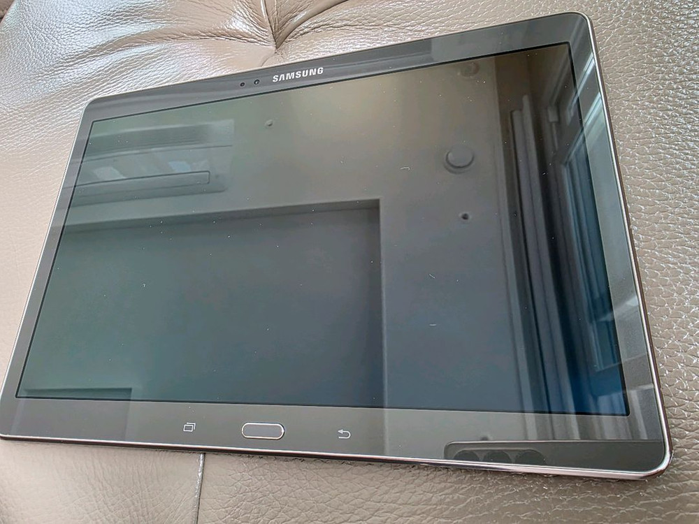 삼성 SM-T805K 갤럭시 탭 S 10.5인치 브로드밴드 LTE-A입니다 - 이어폰 잭 주변 살짝 까짐 등 사용감 있으나 사진으로 보시다시피 잔상 없고 액정(사진상 액정에 보이는 것은 기스가 아니라 먼지입니다)깨끗합니다. 뒷판도 깨끗합니다. - 인터넷 서핑, 유튜브 등 멀티미디어 감상에 좋습니다 - 초기화 해놨습니다. - 원하시면 가죽 케이스도 드립니다.