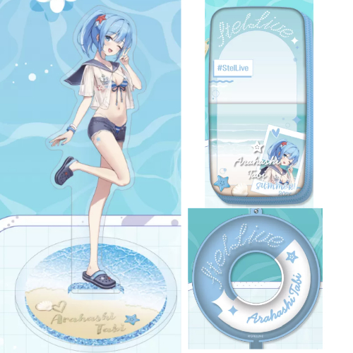 스텔라이브 썸머굿즈 2025년 타비 세트 입니다 미개봉입니다 아크릴 + 키링 + 파우치 구성입니다