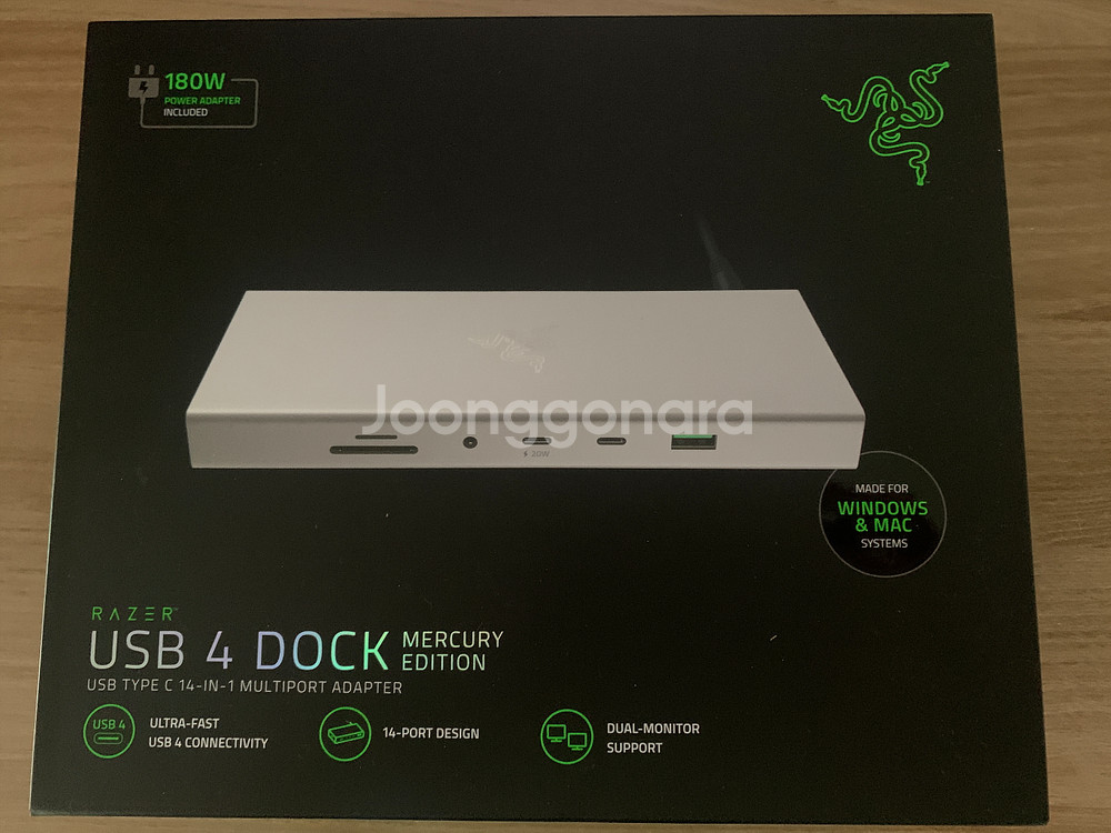 레이저 USB4 도킹 스테이션(독) 머큐리 색상 팝니다. 상태는 거의 새 것과 같습니다. 박스와 구성품 모두 있습니다. 직거래, 택배거래 가능하며 배송비는 별도입니다.