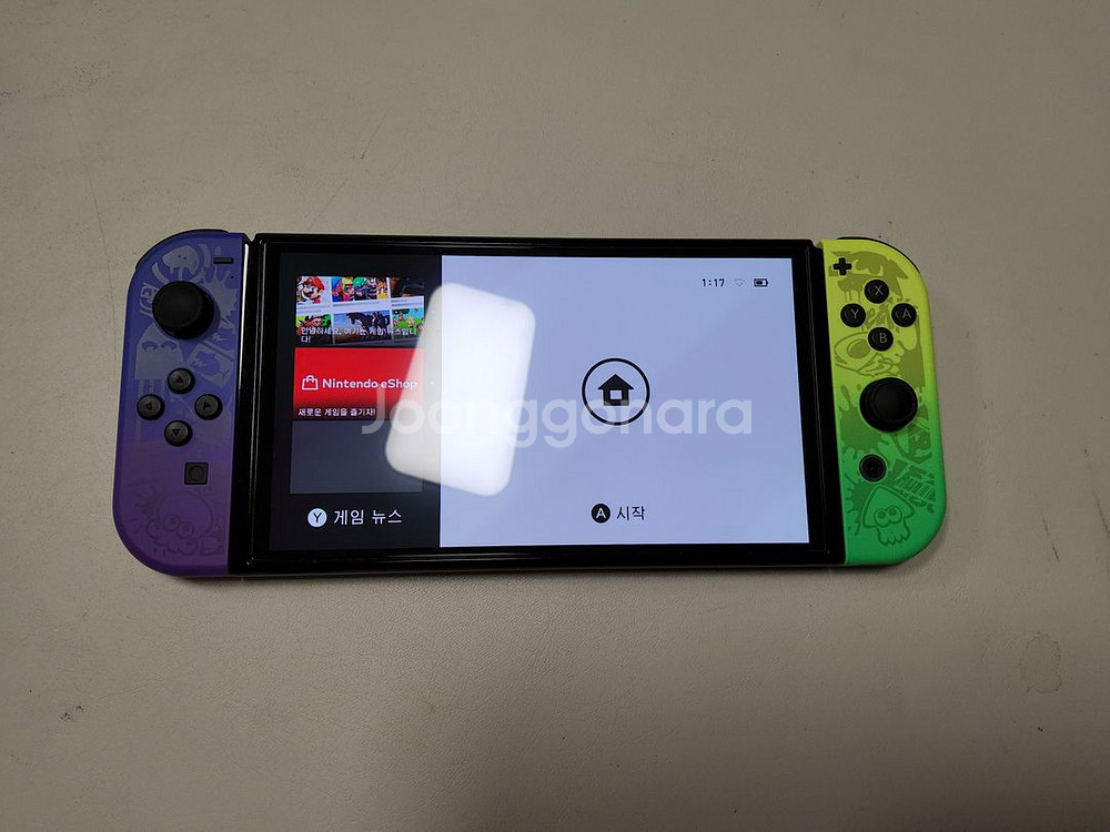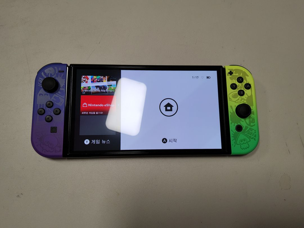 안전결제 가능합니다 택배비 포함 가격입니다 수수료는 제가 부담합니다 구성은 스플래툰에디션 본체와 스플래툰 에디션 조이콘입니다 다른 구성은 없습니다 사진에 있는 본체와 조이콘만 발송 됩니다 모두 정품 스플래툰 에디션이며 , 기능상 문제는 없습니다 전체적으로 상태 괜찮은데 빛으로 비추면 뒷편에 (사진참조)잔기스 몇개 보이고 조이콘 뒷쪽 투명흰색부분도 빛으로 비추면 잔기스 보입니다 액정은 강화유리 붙어 있습니다