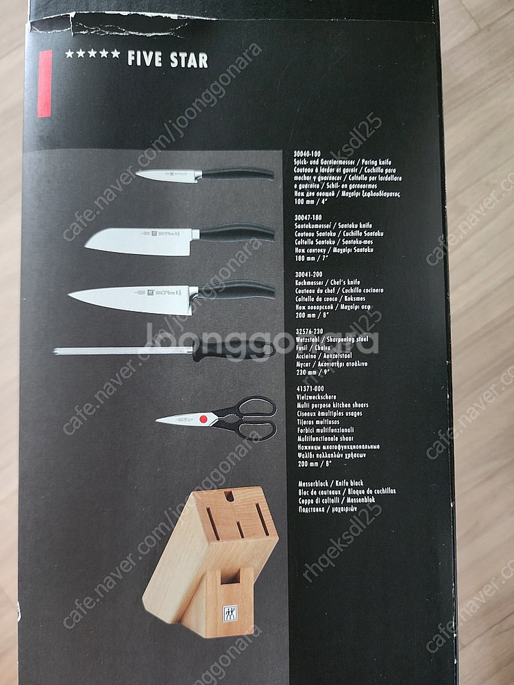 헹켈 즈윌링 5 스타 6종 칼세트 판매합니다. 보관만 했고, 촬영때문에 개봉했습니다. 내부는 새제품입니다. 대구 동구 직거래, 택배(착불)거래 가능합니다. ● 제품 특성상 반품 안되오니 신중히 생각하셔요!!