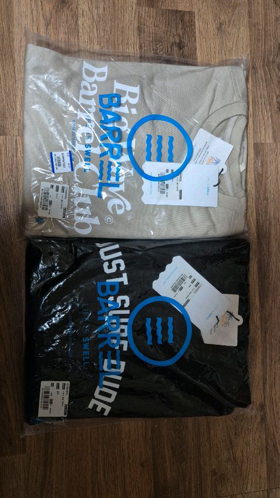 베럴 서퍼스 맨투맨 2종 판매합니다. 입으려고 샀다가 서랍장에 넣어두고 다른 맨투맨이 많아 입지 않아 판매합니다. 블랙 - M사이즈, 정가55000원 베이지 - L사이즈, 정가 55000원 세일해서 각 40000원 정도 주고 샀던것으러 기억하고 다른 제품만 입고 이 제품들은 비닐도 뜯지 않고 보관함 새제품입니다. 간절기인 지금 딱 입기 좋은 두께감이 있습니다. 기모는 없으며 착샷은 첨부 사진 참고하세요. 개별가 20000원, 일괄 30000원에 드립니다. 찔러보기는 정중히 사양하고 평일(근무시간)은 강남역, 출퇴근 시간대(시간협의)는 강남역이나 환승역은 서울대입구역/신림역에서, 휴일/주말/평일 저녁에는 시흥동에서 직거래 선호합니다. (당분간은 출장으로 강남역 직거래는 불가합니다. 서울대입구역/신림역은 협의 필요할 수 있음) ※ 교환/환불/취소불가 ※ 택배 착불 또는 선결제 가능 (파손면책 동의 기준) 입금자(페이, 이체) 순서대로 거래를 하고있습니다 비매너이신분과 직거래시 안오시는분이 있어서 입금 순으로 거래하는 점 양해 부탁드립니다.