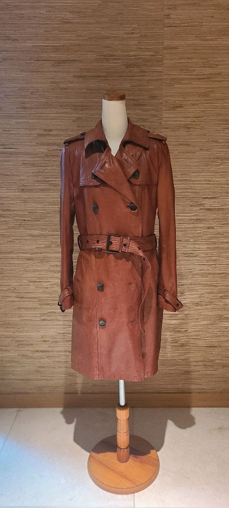 코치(Coach) 가죽 트렌치코트(44~55) - s사이즈 (44~55사이즈, 마른66 해당) - 실측치수(cm): 가슴단면 44.5, 총길이 94 - 소재(%): 천연 양가죽 100% - 색상: 레드 브라운