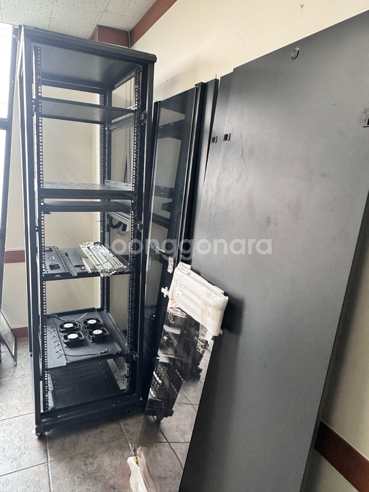 검정색 서버 랙입니다 분해된 상태이며, 팬이 포함되어 있습니다 직접 가져가셔야 합니다 수내역 부근 입니다 중고거래 특성상 교환환불불가