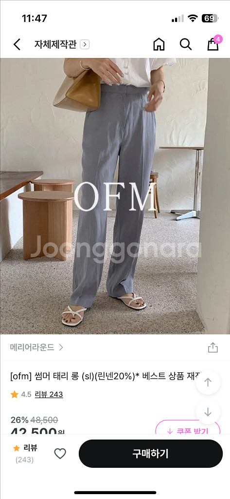 메리어라운드 자체제작 썸머 태리 롱 슬랙스 새상품 S사이즈 롱 구매링크 https://s.zigzag.kr/BMJNjWngaU 새상품) ofm 메리어라운드 썸머 태리 린넨 팬츠 슬랙스 롱 S 미뉴에트 가내스라 일자 바지 슬림 와이드 리에뜨