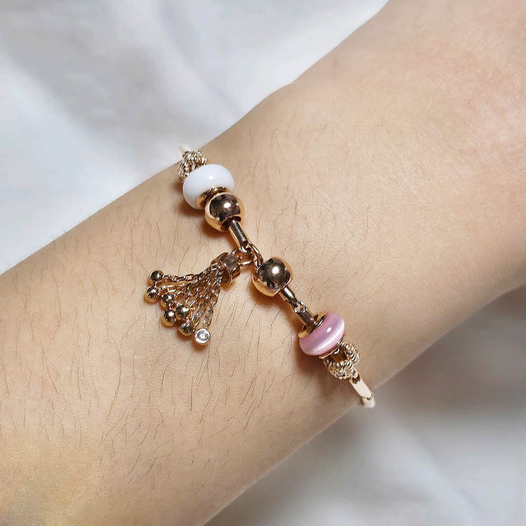 14k 판도라팔찌 = 10.70g 16cm부터~ 영고리가 있으니 누구나 끼실 수 있어요❤️ 갓 나온 신상✨ 로즈골드 색상이 여성스러움을 더 해주는 세련된 팔찌입니다~🌸 택배비 별도 ~! 오후 1시전까지 입금 시 당일배송 우체국으로 발송! 오후 1시 이후 입금은 다음날 배송갑니다~ 천사 주얼리에서 판매되는 모든 제품들은 보증서와 함께 여러분의 품으로 보내드려요 ❤️ 반품신청 불가하오니 꼭 꼭 신중히 선택해주세요!! 금 시세 변동으로 인해 구입 요망 시 가격 문의해주세요!