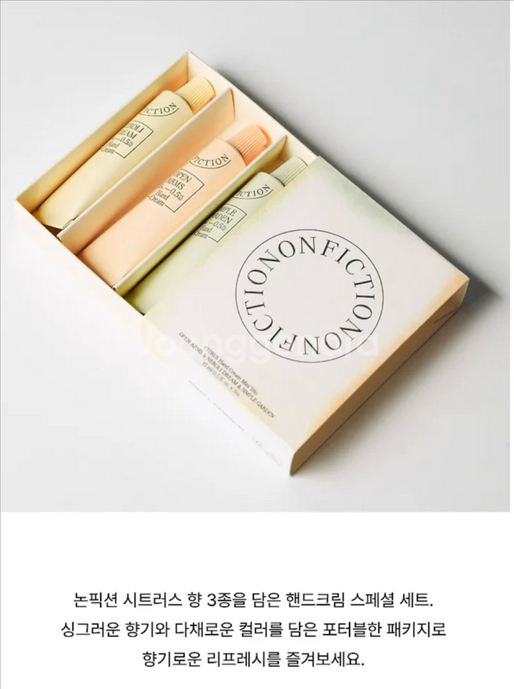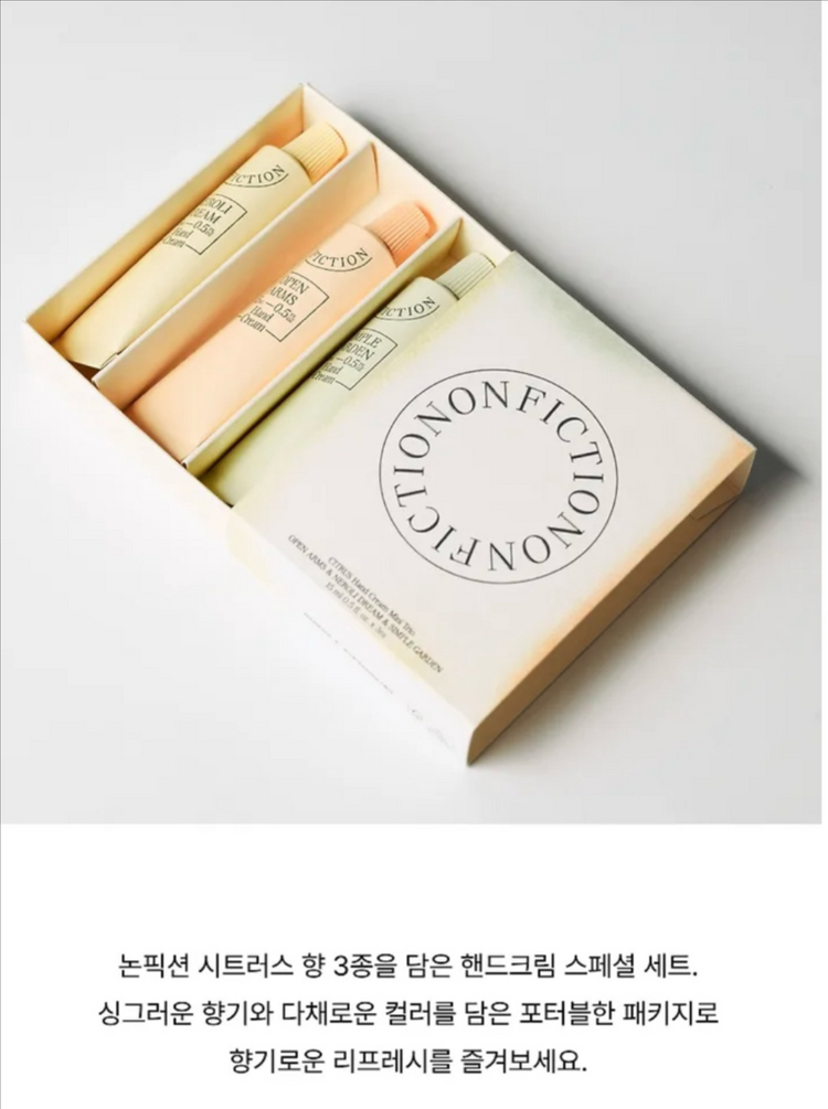 논픽션 시트러스 핸드크림 미니 트리오 미개봉새제품 정가 32,000원 판매가 20,000원 택배비 별도(편의점반값+1,900/일반+3,500)