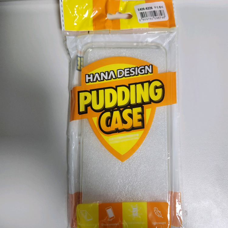 삼성 갤럭시 A22 5G (SM-A226) 전용 푸딩 젤리 케이스입니다. 미사용 새상품이고, 투명 TPU 재질이에요.