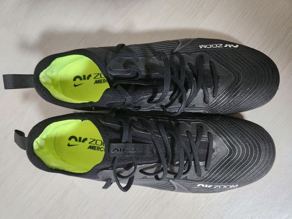 나이키 줌 머큐리얼 베이퍼 15 프로 TF 구하기 힘든 올블랙 285사이즈 판매합니다 마지막 사진에 보시면 오른발 엄지부분(?) 미세하게 찍힘(?) 있습니다 만져보면 느낌도 안나구요 착용시 문제없이 사용가능합니다 사이즈 미스로 저렴히 내놓습니다 편하게 채팅 주세요~