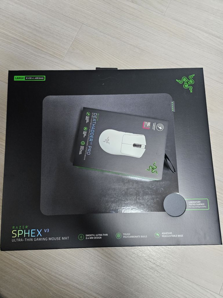 레이저 데스에더 v3프로+sphex v3 패드 팝니다. 미개봉 새제품, 국내정발 제품이며 당산역 주변에서 직거래 가능합니다. 여러대 보유하고 있습니다.
