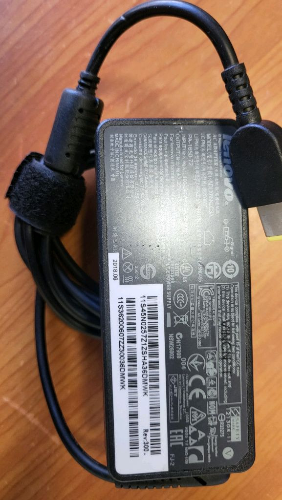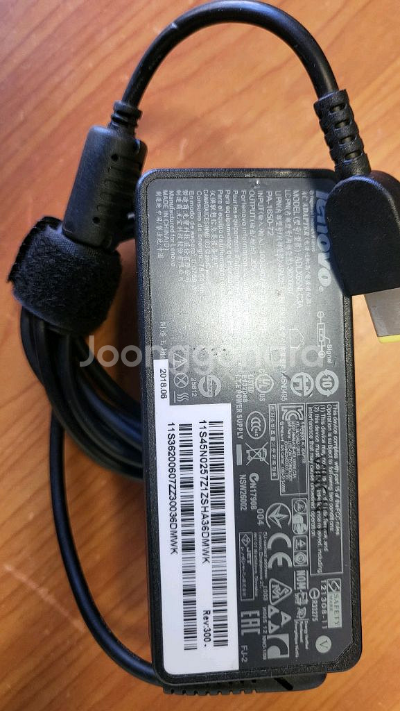 레노버 노트북용 정품 충전기입니다. 사용감은 있지만 정상 작동하며, 어댑터와 케이블 모두 포함되어 있어요.사각 노란색 입니다