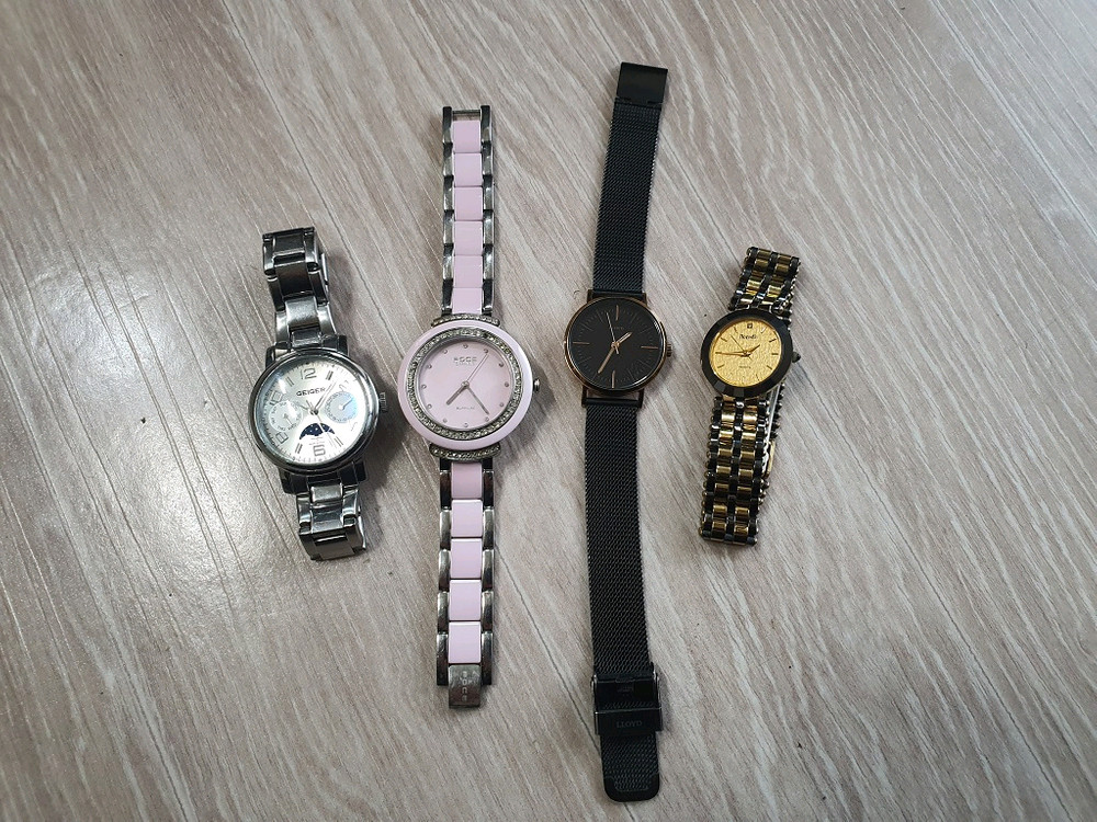 GEIGER 가이거 FOCE LLOYD ROGADIS 모두 배터리 방전되어 방치해 놓았던 여성시계 입니다. 알아서 활용 가능하신 분만 구매해 주세요. 외관은 사진 참고하세요. 가격: 일괄 40,000원 (배송비 4,000원) 판매되면 삭제하니 채팅이나 쪽지 남겨주세요.