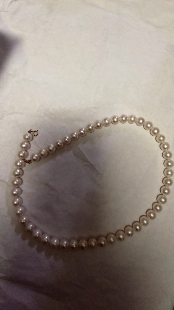 AAA급 8mm 담수진주비드 목걸이 구입시기 22년6월 미착용 새상품 케이스 빼고 다 있어요 택배 거리 직거래 다 가능합니다 14k 골드 장식입니다