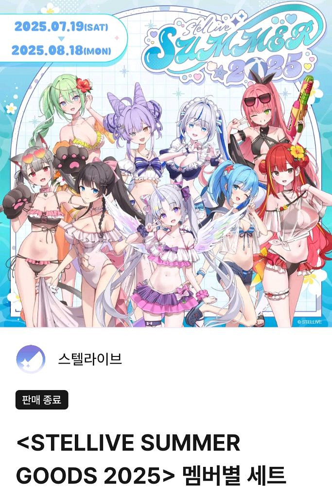 스텔라이브 썸머굿즈 2025년 멤버별 굿즈 세트이고 미개봉 상태로 보관중입니다. 멤버별 세트 - 1세트당 11만원 판매중 유니 시로 부키 / 린 나나 - 완료 리코 - 완료 히나 - 완료 리제 - 완료 타비 - 완료