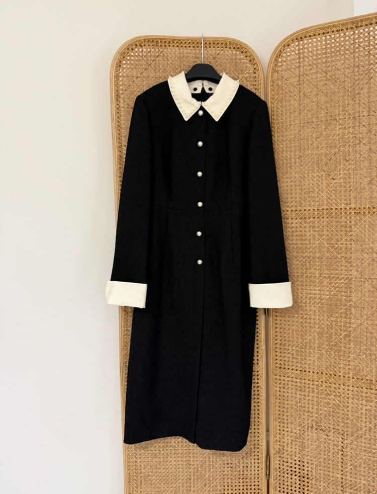 로엠 블랙 배색 카라 롱 원피스입니다! (66사이즈) 원래 가격은 29만원 정도고 현재 프로모션해도 26입니다. 가격대가 있는 만큼 트위드 소재가 고급스럽습니다. 집안 행사로 2번 실착했고, 드라이클리닝해서 깨끗합니다. 살이 쪄서 발목만 보이는 원피스를 선호하다보니 판매합니다. 중고거래상 교환/환불 어렵습니다. 🥲