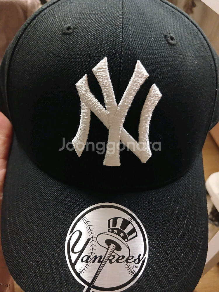 정품 야구 모자예요. 블랙 컬러에 화이트 로고가 깔끔하고 상태도 양호합니다. 야구 팬이라면 꼭 가져야 할 아이템이에요!