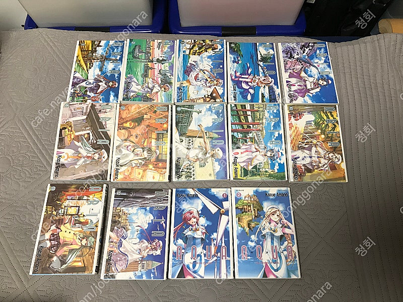 소장용 절판 만화 만화책 코믹스 아마노 코즈에 아리아 1~12권, 아쿠아 1~2권 완결 북박스 판매합니다. 종이질이 좋기로 유명한 북박스판이고, 전권 상자에 보관만 한 소장용입니다. 다만 원래 1년 전까지만 해도 별다른 하자 없는 소장용 상태였는데, 보관상 문제가 있었던 건지 책 윗면 종이 부분에 붉은색 얼룩 변색이 최근 생겼습니다. 그중 한 권은 책 옆면에도 얼룩이 있습니다. 사진으로는 잘 안 보이지만 붉은색 점처럼 보이는 얼룩들이 책들 윗면 종이 부분에 다수 분포되어 있습니다. 감안하고 구매 부탁드립니다. 사포로 가는 걸 추천드립니다. 인터넷 검색해 보니 저 말고도 북박스판 아리아에 붉은색 얼룩 생기신 분 있는 거 보면 북박스판 특유의 보관상 불량 문제인 걸로 보이기도 합니다. 또한 사진과 같이 아쿠아 종이 부분에 황변 있으니 참고 부탁드립니다. 택비는 별도 6천원입니다.