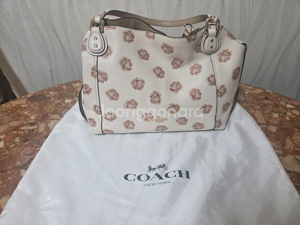 코치 가죽 토트 앤 숄더백이에요 장미꽃 패턴에 은은한 반짝임의 고급스런 느낌에 봄과 여름에 어울리는 가방이에요 더스트백까지 포함되어 있고 사용감이 거의 없는 제품임이에요 하와이면세점에서 직접 구매한 제품으로 한국에서 거의 볼수 없는 제품이에요 상태는 사진과 같이 양호하구요 정장이든 캐주얼이든 어디든 어울리는 예쁜 가방이에요 30×10×23 크기로 수납력도 좋은 가방이에요