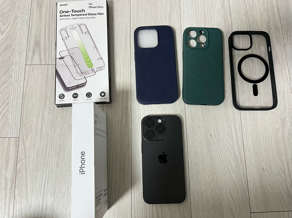 아이폰 15pro 128GB 블랙입니다 케이스 3개와 강화유리 액정필름 1장 같이 드려요 스크래치 없는 상태 S급입니다