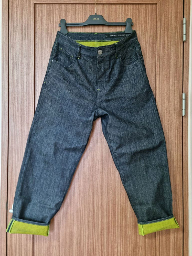 A/X 아르마니 익스체인지 진청 그린 형광 포인트 BAGGY JEAN 허리 32사이즈 판매합니다~! 사진처럼 바지 안쪽과 박음실이 모두 그린 형광으로 포인트가 있어서 정말 멋진 바지입니다. 옆선 기준 총기장 대략 100Cm 정도에, 엘라포함으로 루즈한게 바지 핏도 너무 멋지고 착용감이 편한 바지입니다. 국내 정품으로, 두 세번만 착용해서 아직 빳빳하고 상태도 아주 좋습니다. 삼성중앙역 4번출구에서 직거래도 가능합니다. 직거래나 계좌문의만 받으며, 에눌문의는 안받습니다. 공일공 팔구육오 칠팔오육