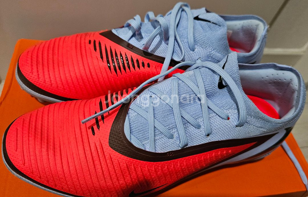 나이키 팬텀 6 프로 TF 265 사이즈 1회 2쿼터 착용으로 상태 매우 좋습니다. 나이키코리아 정품으로 박스 탭 모두 보유 팬텀 시리즈중 가장 편합니다. 어퍼가 엄청 쫀쫀하고 신축성좋아 편하고 리액트폼 쿠션으로 푹신하니 좋습니다. 스터드도 축살화라 불릴만큼 앞쪽 인사이드 아웃사이드 후방 아웃사이드에 크고 긴 스터드 배치로 물기있어도 접지력이 좋아요. 정가 16.9만원 나이키 풋살화 최상급입니다. 네고 교환 X