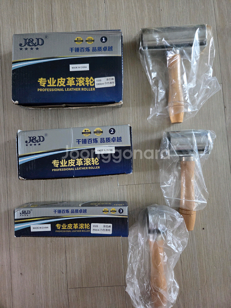 미개봉 가죽공예용 롤러 3종 세트 판매합니다. 가죽 공예할 때 유용하게 쓰이는 도구입니다. 100mm,60mm, 26mm 3종. 별도 문의 없으시면 바로 안전결제 부탁드려요!