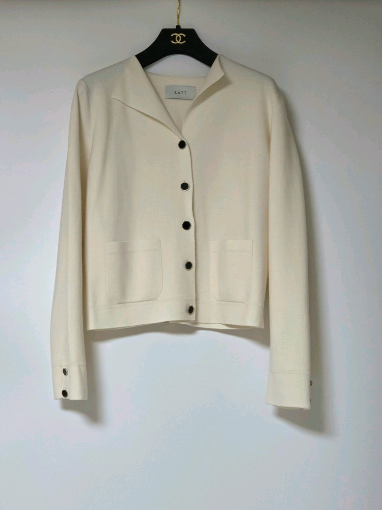 베이직한 디자인의 한섬 래트 LATT 가디건 2023년 매장에서 4-50만원 대에 구입한 22년 12월 제조 초판 품번 소재 모 90, 폴리에스터 10% 같은 한섬 타임, 마인과 유사한 고급스러운 디자인 택 기재 90으로 실측 가슴 반품 47, 기장 뒤쪽 기준 50cm 드라이 완료