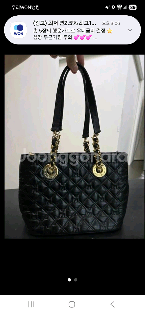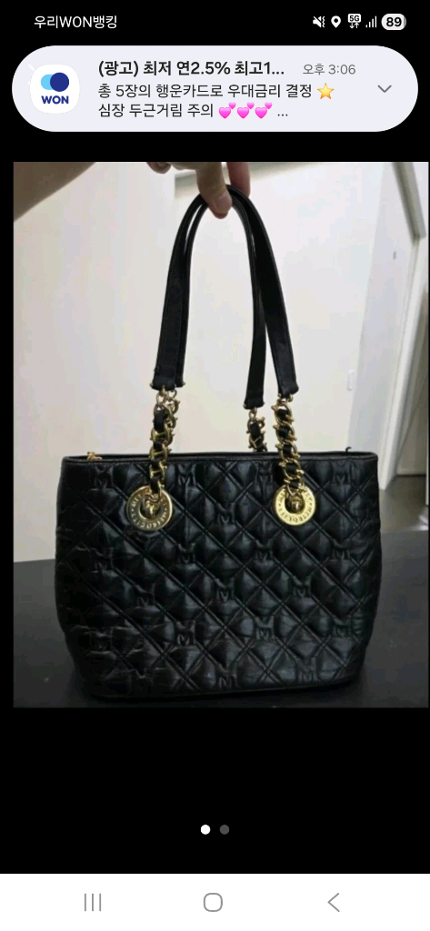 블랙 퀼팅 체인백이에요. 골드 체인이 포인트로 되어있고 내부도 깔끔한 상태입니다. 실용적이면서도 고급스러운 디자인으로 데일리용으로 좋아요.