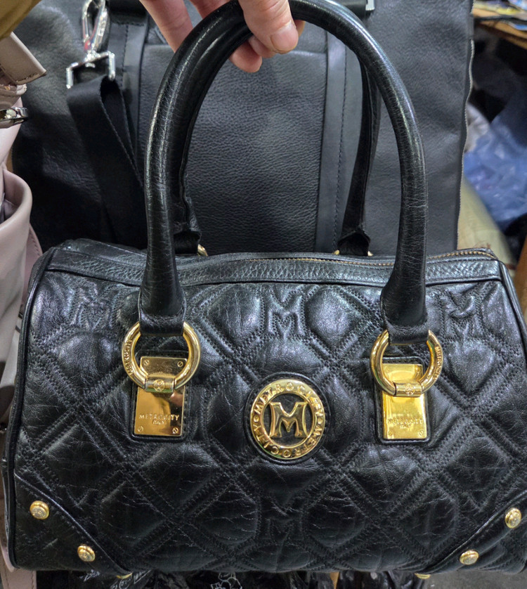 시그니처 로고와 골드 하드웨어가 포인트인 블랙 퀼팅 핸드백이에요. 체적으로 깔끔한 상태입니다.
