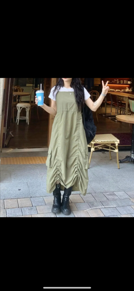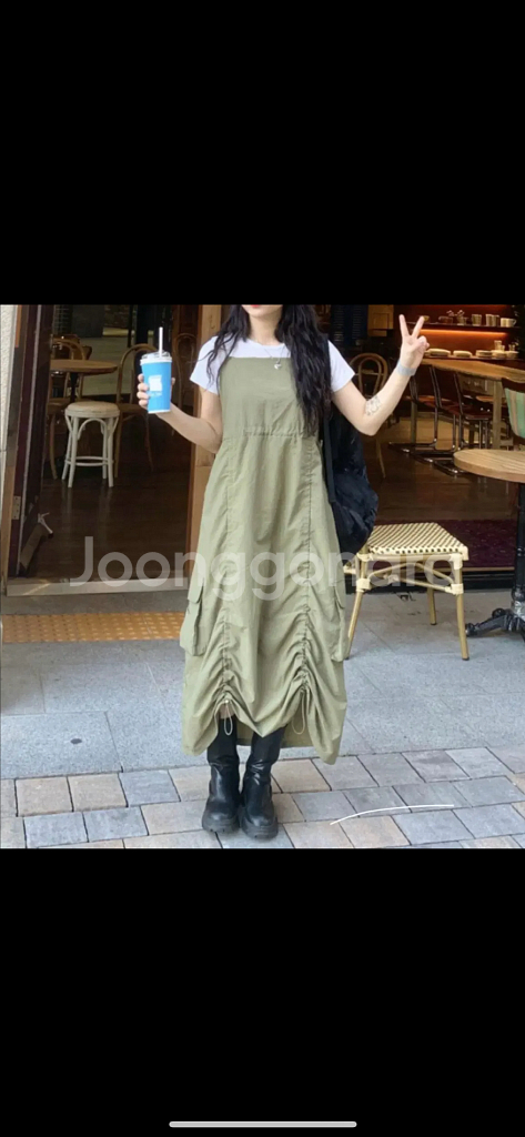 [F] 행자씨 스트링 카고 끈나시 롱원피스 카키