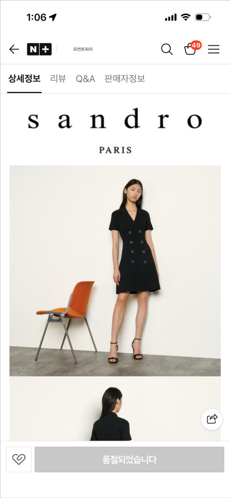 산드로 정품 니트 원피스 36싸이즈 테일러드 디자인으로 격식있는 여름 원피스로 니트소재 길이감도 좋아서 편하게 입어요 두세번 입었어요 제품 이상없이 보관중이고 전 나이가 이제 안맞는듯하여.. 탄성이 좋아 몸매 잘잡아주구 소재도 시원한 니트소재예요 편의점 반택은 배송비 무료입니다