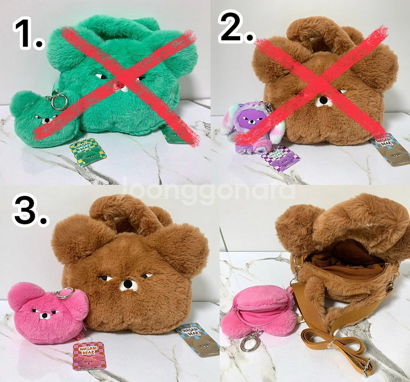 귀여운 와사비베어 크로스백입니다! - 독특하고 개성있는 디자인으로 시선을 사로잡아요 - 부드러운 촉감으로 기분까지 좋아져요 - 크로스백과 키링 세트로 실용성을 더했습니다 3세트 가능하고 2종 세트로만 판매해요 1번 그린 와사비베어 크로스백 + 그린 파우치 키링 2번 브라운 와사비베어 크로스백 + 보라 캣라비 키링 3번 브라운 와사비베어 크로스백 + 핑크 파우치 키링 원하시는 세트로 문의주세요! 모두 택달인 새상품이에요! 네고문의 교환문의 사양할게요 사실분만 쳇 주세요 쳇 주시고 잠수타시는 분들 차단합니다 서로 시간낭비 하지맙시다! 가격이 안맞으시면 맞는 분과 거래하시면 됩니다! 신중하게 고민해보시고 쳇 주세요! 매너거래해요 상계주공1단지에서 문고리거래가능하고 반택 2200 일반택배 4000 추가해주시면 됩니다