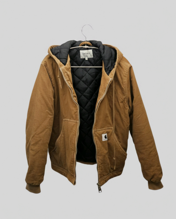 칼하트 WIP 밀렌 자켓 - 더스티 해밀턴 브라운 XS사이즈 판매합니다 사진에서 보시는 것처럼 전체적으로 깨끗하고 좋은 상태를 유지하고 있어요 안감은 퀼팅 처리되어 있어 보온성이 뛰어나며, 후드가 일체형으로 디자인되어 있어 실용적입니다 KC 인증 정보도 확인됩니다