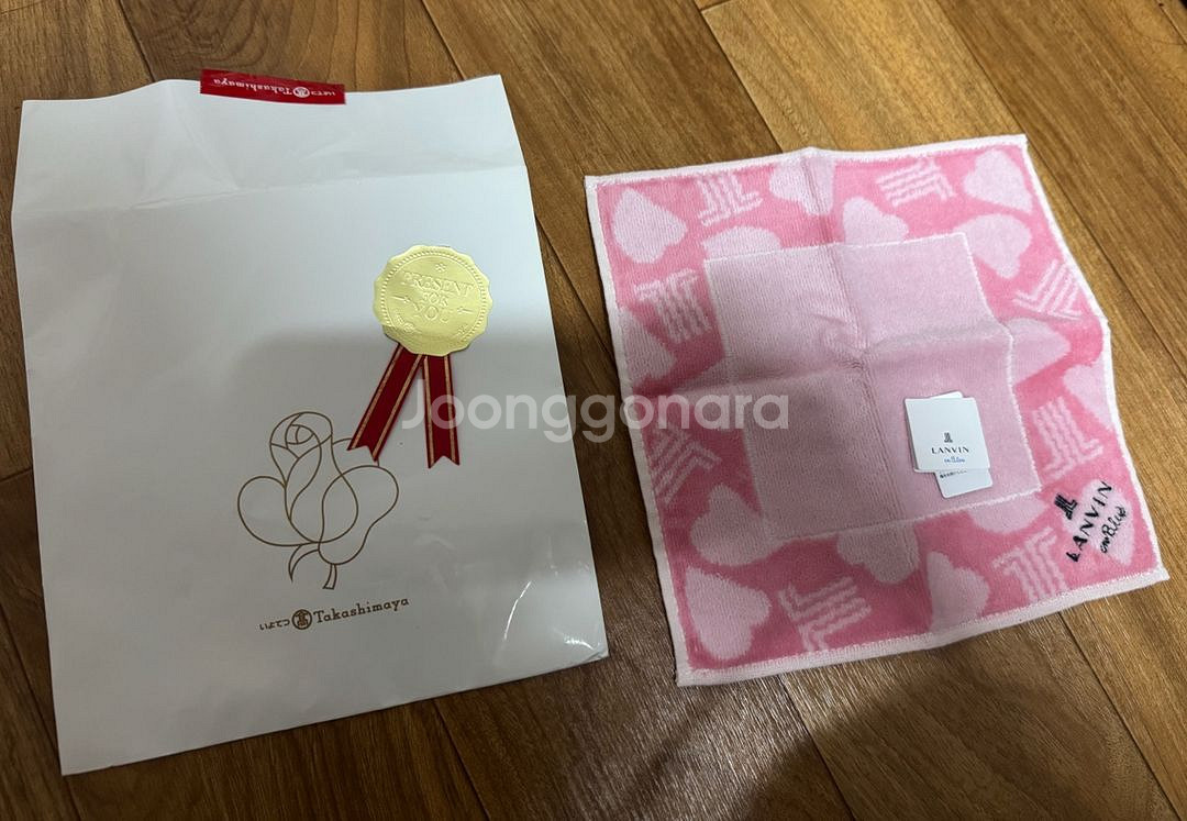 LANVIN 타올 손수건입니다 핑크색 바탕에 하트 패턴이 귀여워요 새 상품이라 선물용으로도 좋습니다 사이즈 20X20cm (약간의 오차)입니다 포장봉투에 넣어 드려요 10000원에 팝니다 네고, 환불은 불가입니다!!