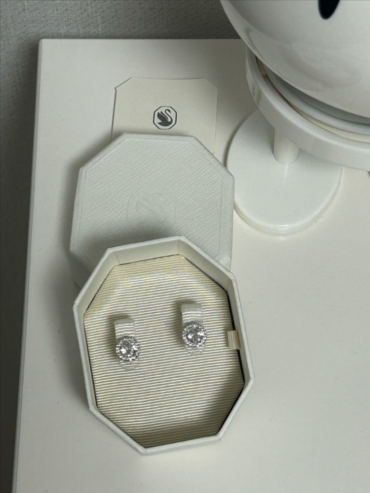 두 제품 모두 백화점 매장 정품, 미착용 새 제품입니다(에눌 불가). 보증서 및 패키지 구성 같이 보내 드려요. 안심거래는 이용하지 않습니다. (택배로 보내드려요/ 제품 특성상 반품불가) 1. 스와로브스키 una angelic 스터드 이어링 배송비 포함 68000원 2.스와로브스키 snake 드롭 이어링 배송비 포함 173000원