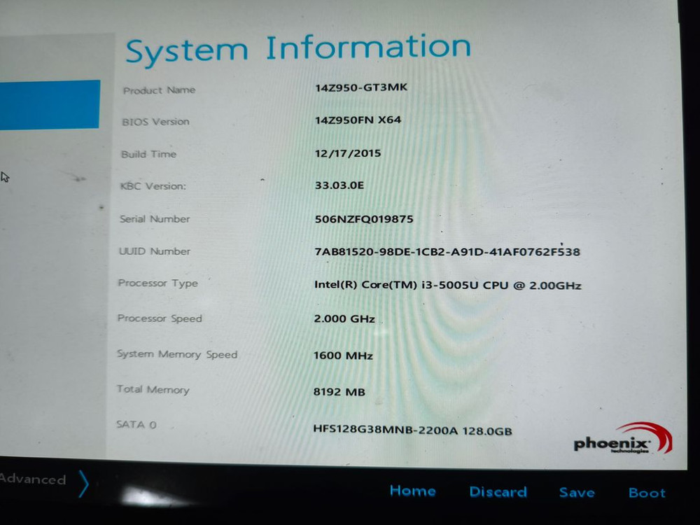 그램 14인치 i3 5005u ddr3l 8 m2 ssd 128 입니다. 하판이 없습니다. 화면 중앙부부분에 멍이 있습니다.