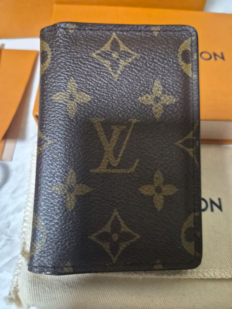 싸이즈 : 가로 7CM / 세로 11CM 색 상 : 브라운 계열 부속품 : 풀박 영수증 : 없음 상태 : A등급 Louis Vuitton(루이비통) M60502 모노그램 캔버스 포켓 오거나이저 카드지갑 매장가 610,000원 입니다. 심플하면서 세련된 느낌을 줍니다. 내부는 카드 수납 공간 6군데, 기타 수납 공간 3군데입니다.