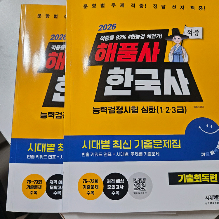 2026 해품사의 기분좋은 한국사능력검정시험 심화(1·2·3급) 적중 시대별 최신 기출문제집 ✔️ 2026년 1월 11일 알라딘 구매 ✔️ 29쪽까지만 선지 o,x 샤프로 체크 택포 만원 (한진택배- 오전 10시 이전 거래시 기사님이 당일 수거하십니다)