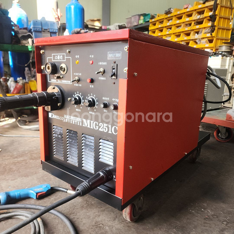 디웰코 에서 생산한 국산제품입니다 박판 판긍용 으로 너무좋고 250A등급 모델이라 1.2mm용접에도 좋습니다 전기는 380v 삼상 토치3미터 어스3미터 게이지 풀셋입니다 01091702942 조태형 차장