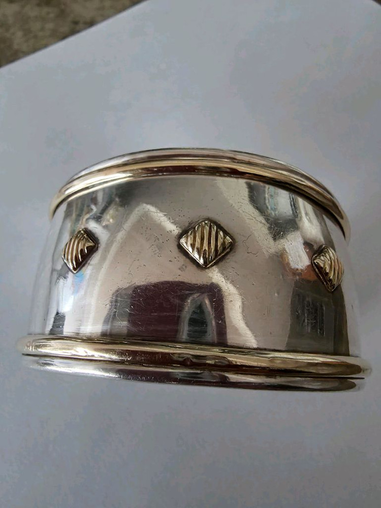 스털링실버+14K로 제작된 심플한 팔찌입니다. 위,아래 14K 두줄과 3개의 14K금볼이 포인입니다. 중량 44.8g으로 약12돈입니다. 중량과 존재감으로 패셔니스트한테 좋은 아이템입니다. 특별 제작된거라 흔히 볼수없는 아이템입니다 금값, 은값, 세공비 폭등~~~