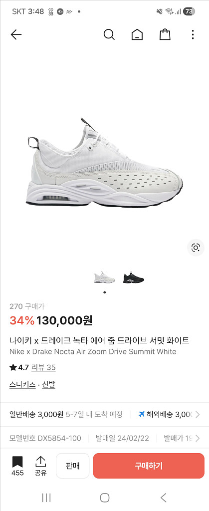 나이키 x 드레이크 녹타 에어 줌 드라이브 서밋 화이트 270