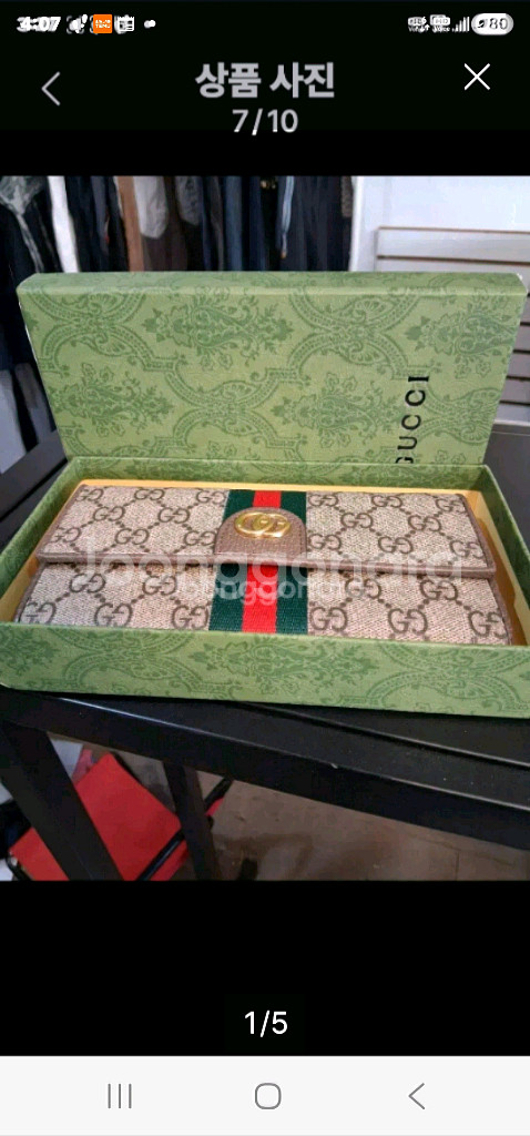 1번 사이즈 가로 20 세로10 2번 사이즈 가로 40 세로27 1.번 2. 함께 하면 15만원에 드립니다! 구찌의 오피디아 콘티넨탈 지갑입니다. 이 지갑은 구찌의 시그니처 GG 슈프림 캔버스와 웹 스트라이프 디테일, 더블 G 엠블럼이 특징입니다. 제품 정보 브랜드: 구찌 (Gucci) 모델명: 오피디아 콘티넨탈 지갑 (Ophidia Continental Wallet) 소재: 베이지/에보니 GG 슈프림 캔버스, 브라운 가죽 트림 특징: 1970년대부터 사용된 GG 로고 패턴 그린/레드/그린 웹 스트라이프 라이트 골드 톤 하드웨어 및 더블 G 엠블럼 내부에는 여러 개의 카드 슬롯과 지폐 컴파트먼트, 지퍼 포켓 등이 있습니다. 스타일 번호 (예시): 523153 96IWG 8745 또는 838485 FAE0L 9746 가격대 공식 홈페이지 및 기타 판매처에 따라 가격은 상이할 수 있으며, 일반적으로 신제품 기준 약 820달러 (한화 약 100만원 이상) 선입니다.