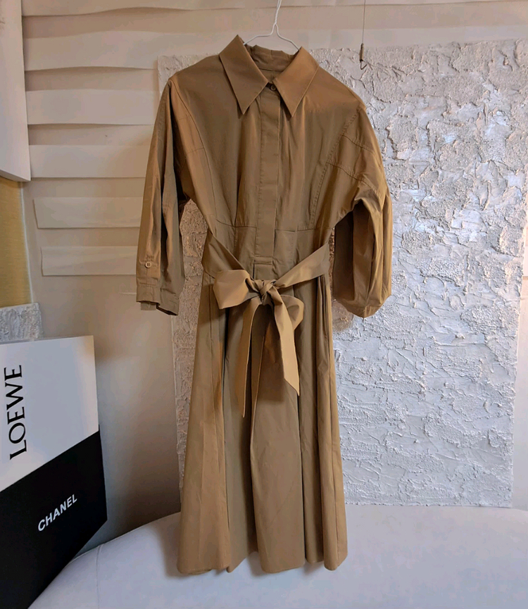 카멜 색상의 수입 셔츠형 롱 원피스 수입 원피스 가단45/기장110 신축성좋은 춘하용 원피스 코튼나일론소재 봄부터 여름까지 날씨에 딱 입기 좋아요. 허리 벨트가 있어서 라인을 살려줍니다. 최상급