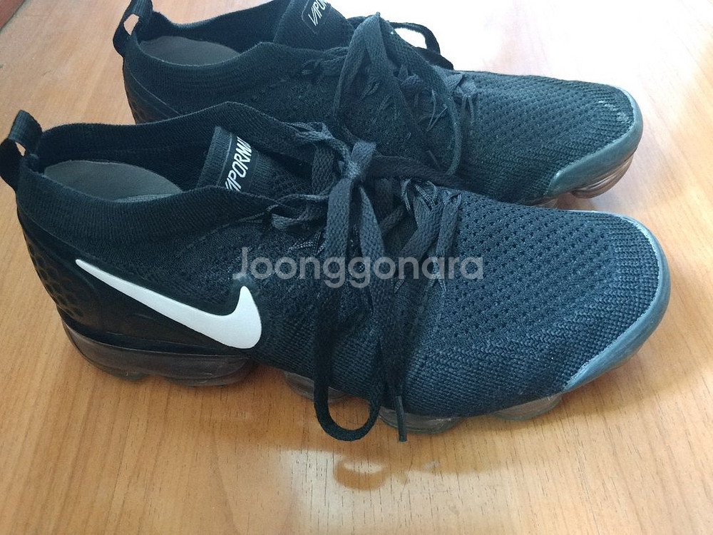 nike 나이키 에어 베이퍼 플라이니트 검정 정품 260 mm 입니다. 사용감은 있지만 깨끗합니다. 오른쪽 앞쪽 끈 연결 부분 실밥 끊킴 하자 있지만 끈 묶고 푸는데 전혀 상관없습니다. 외관상 좀 문제있어보이지만 기능엔 전혀 문제 없습니다. 이것때문에 가격 많이 내려 놓았습니다. 클린토피아 세탁 완료했으며 , 세탁후 왼쪽앞부분에 자국이 생겼는데 안없어 지네여.. 사이즈가 작아서 내놓습니다. 바닥 에어상태 좋고 조깅화 런닝화로 좋습니다. 택배는 +₩4,000 (or) gs반값택배 +₩2,500 입니다.