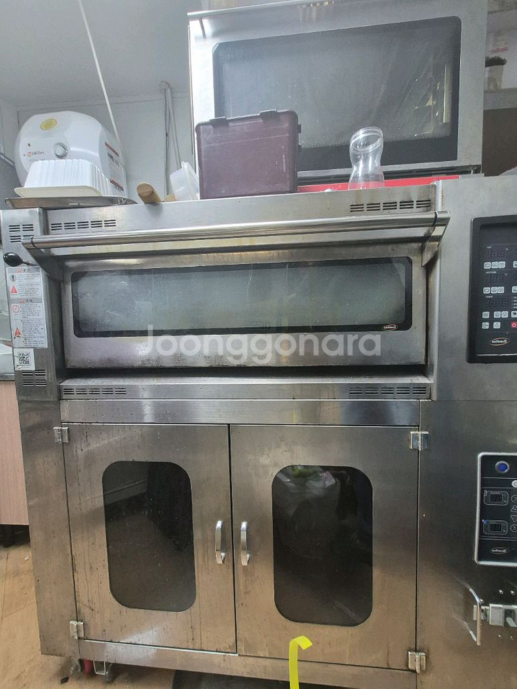 대흥 소프트밀 데크오븐 및 하부 발효기 2매 1단 데크오븐(스팀,대리석)과 하부 발효기(14매,사진중간에 비어있는 칸은 일부러 뺀것입니다.렉있음)입니다. 2016년에 신품구매해서 교육용으로 사용후 보관만 하다가 판매합니다.